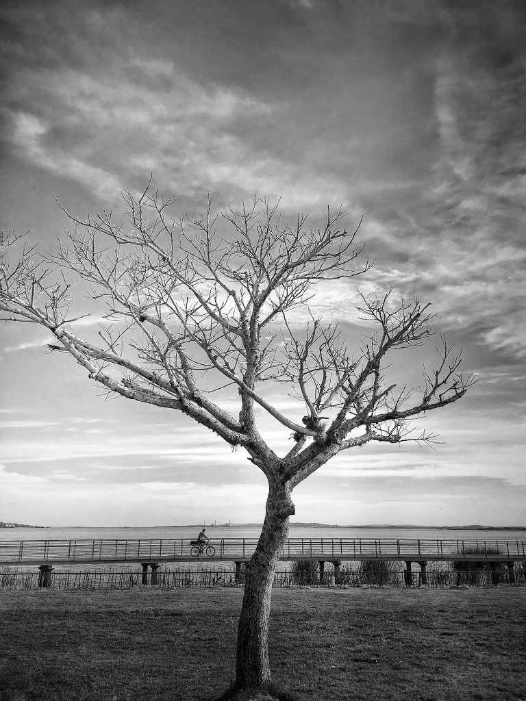 A árvore de hoje não é das mais robustas: está sem folhas e algumas pessoas pensariam que está morrendo e se afastariam da sua sombra, mas não Bruna. Ela estica sua canga colorida perto do tronco e resolve deitar-se para observar o céu. Pensa consigo que tardes de outono são ótimas para fazer isso. Exatamente isso.